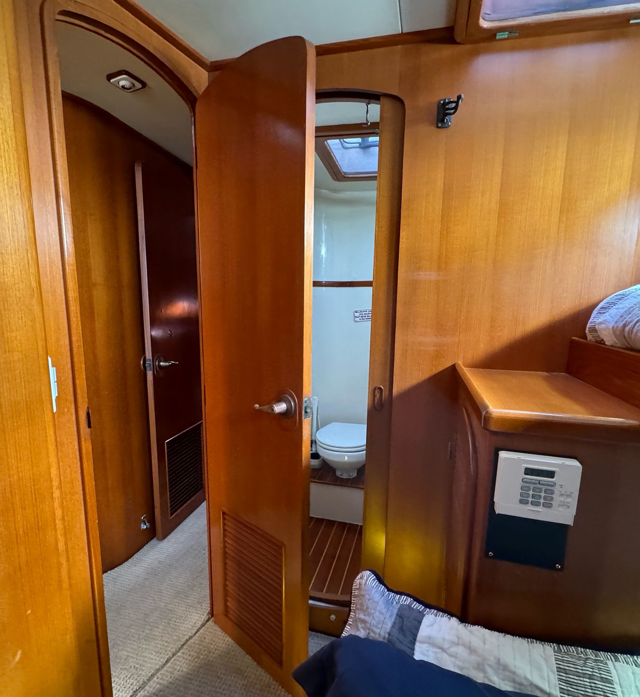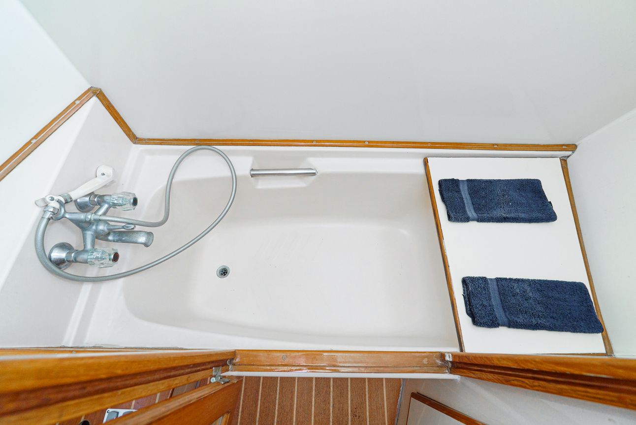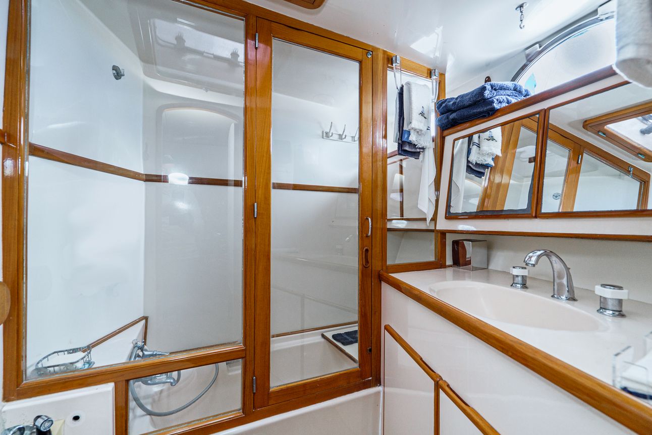 The day head is available for guests staying in the Port and Starboard Cabins and is also accessible from the main hallway.